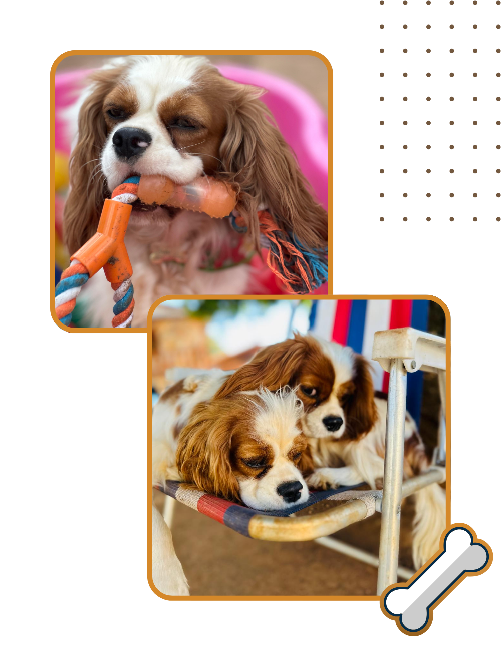 Nossos Cavalier King Charles Spaniel vivem em um ambiente limpo, climatizado e confortável, onde a higiene é prioridade diária. Tudo pensado para garantir segurança e tranquilidade às mamães e seus filhotes nos primeiros dias de vida.